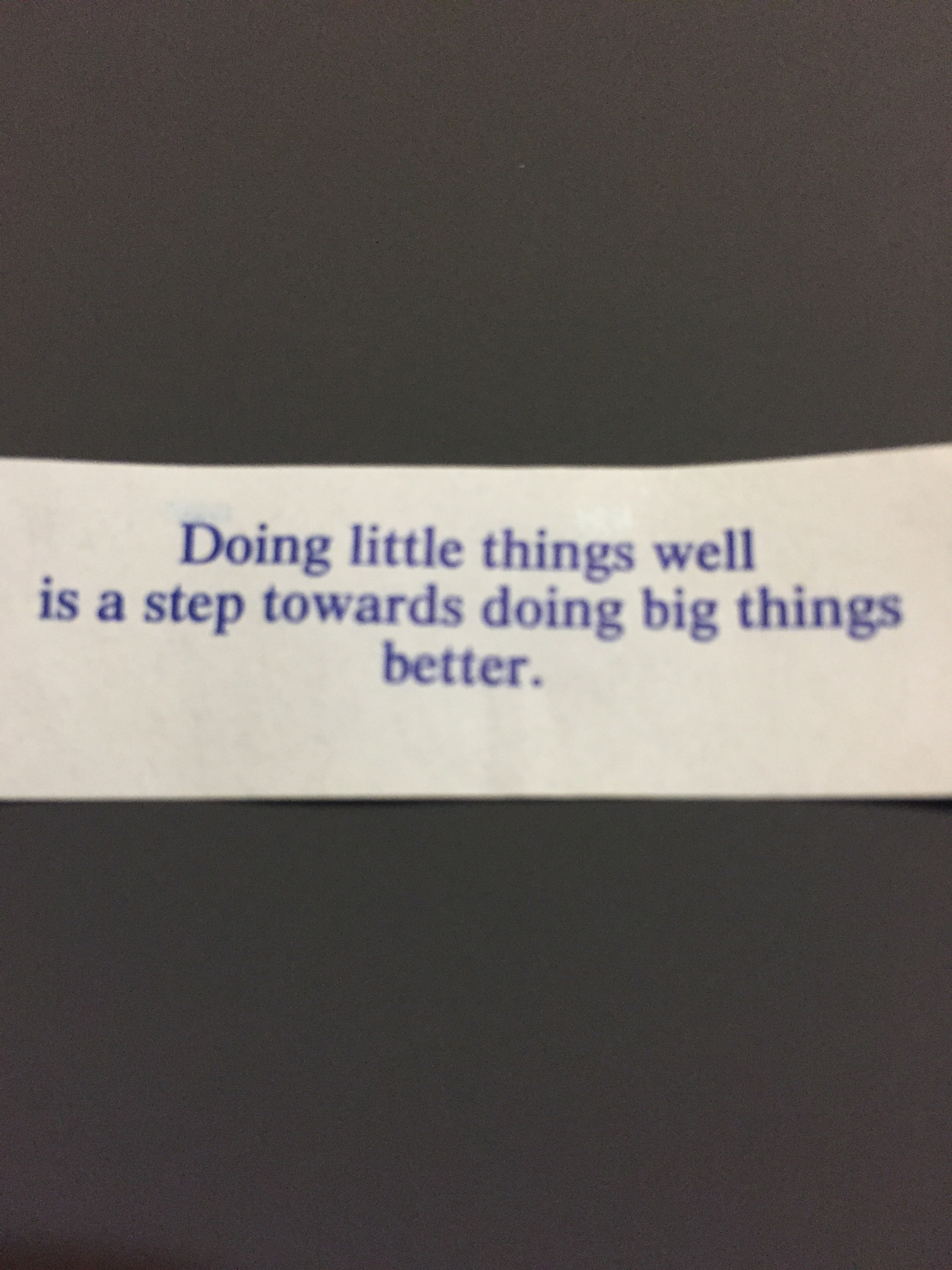 I think it’s a great thought because we can’t acheive great things without doing little things well. We can’t run before we walk. I learned that from first hand experience. I could barely write my name, now i’m writing a blog.