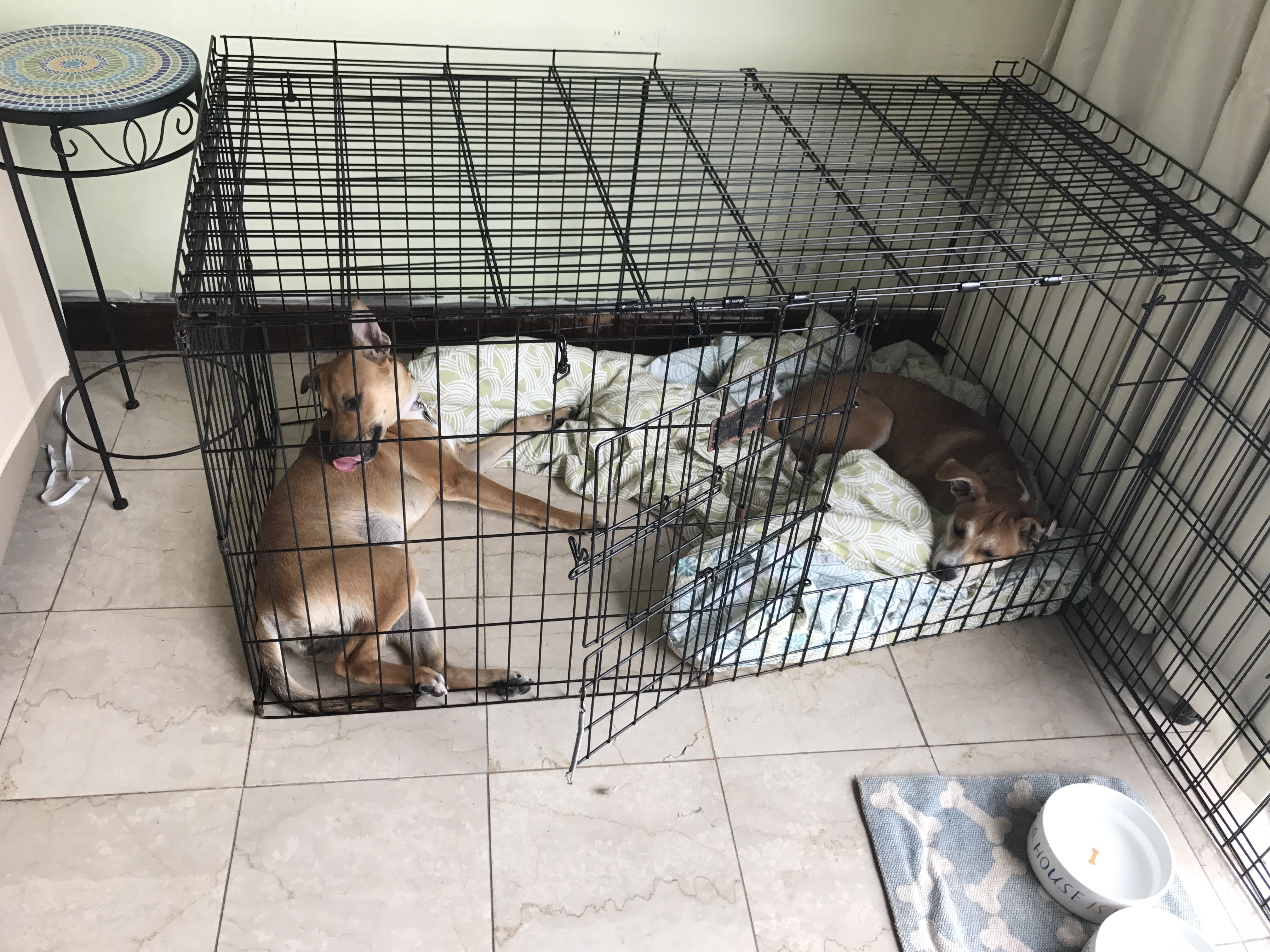 This morning I was in my room and I suddenly heard some crying. I looked at the hallway and there they were, Indy and Sandy, both sitting and looking at me giving me a look like what’s taking so long? Sandy also making that sad howl, which pretty much was the dog translation to come.