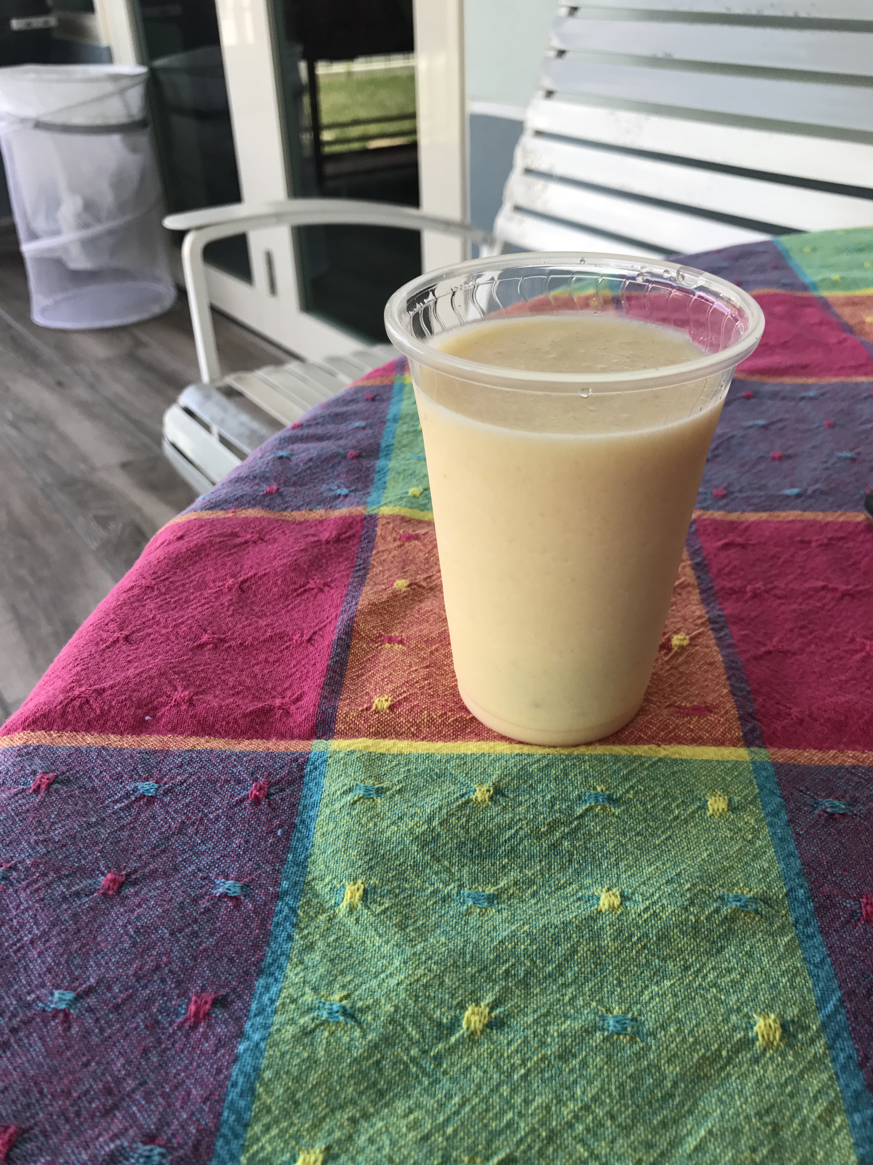 It really didn’t matter because later she cut it again into large pieces and today it all went into the Osterizer today when we (she, I watched and took pictures of the process) made it the Piña Colada.