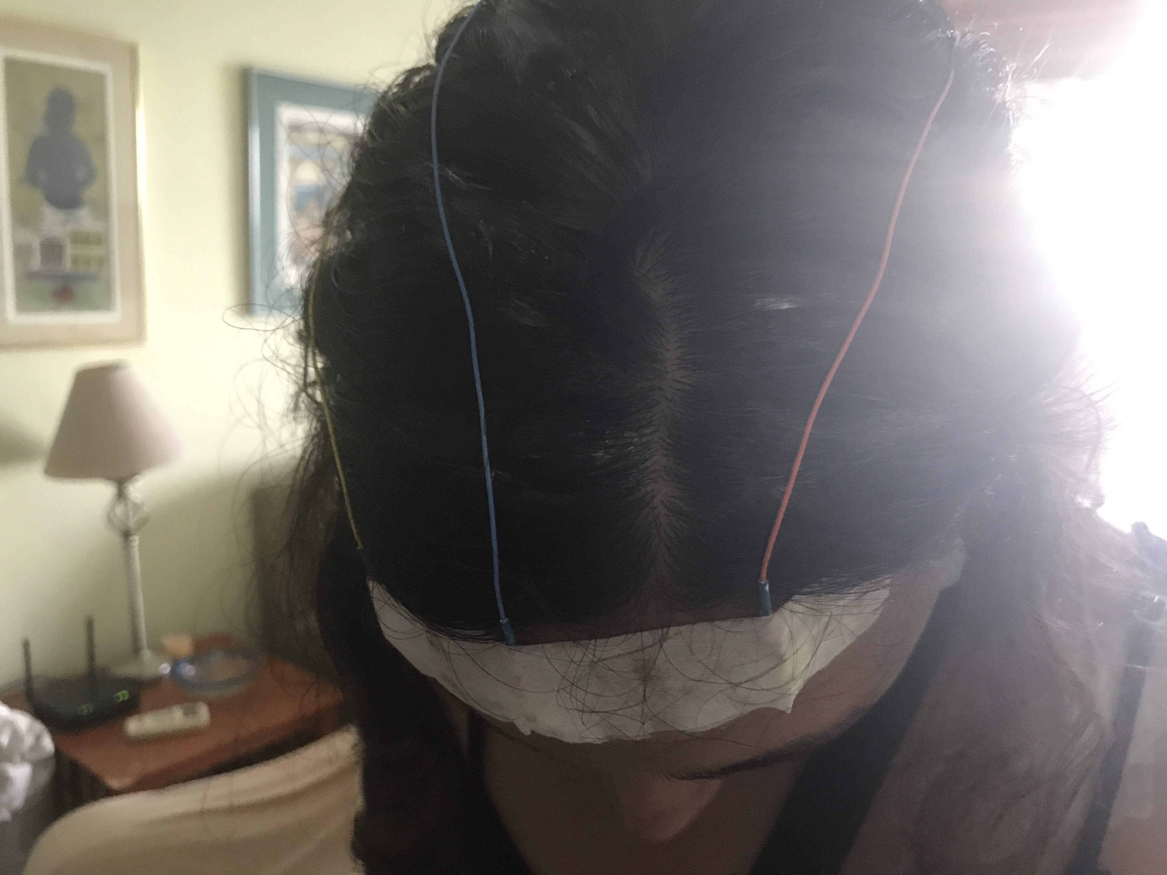 I have to be very careful that my dogs don’t pull on the cables and ruin the whole thing. They already seemed pretty excited by all the stuff hanging from my head so now I sadly have to stay away from them until tomorrow. Apart from that and not showering I can pretty much go about my day as I usually do. To my great surprise I am allowed to use electronics while I have the EEG on as long as nothing is plugged in or charging.