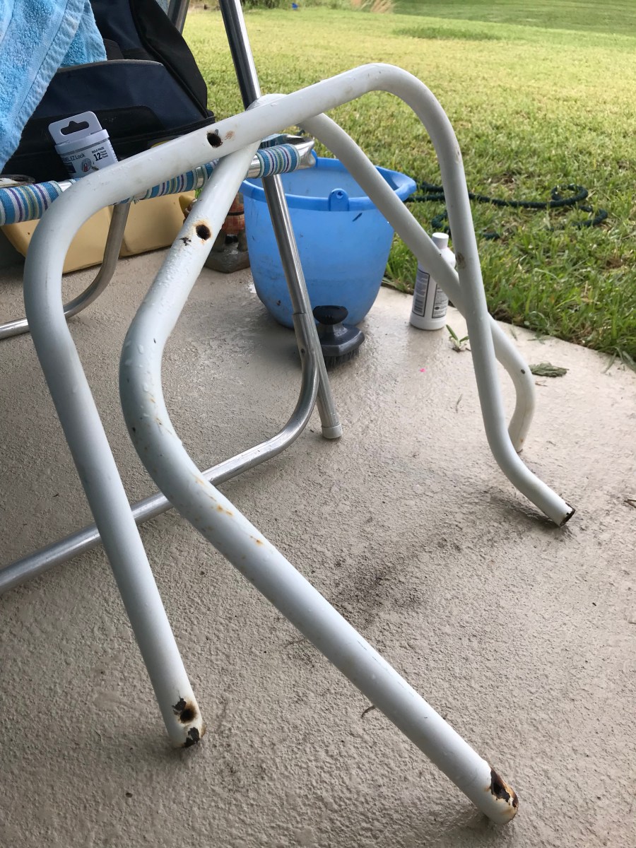 When I got the first part of a chair, which was set up on top of two bars, I started painting carefully because I had my supervisor (grandpa) watching me. I also didn’t want to mess up right after I started, then they wouldn’t let me paint anymore.