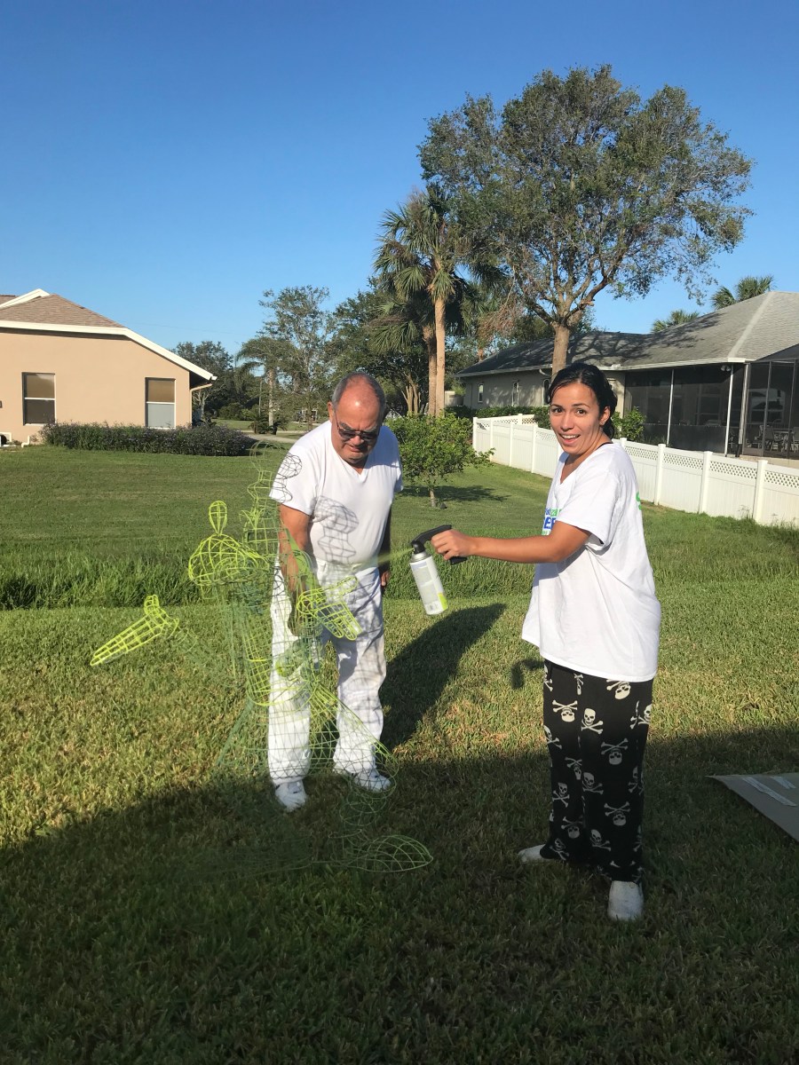 After I was more comfortable with what I was doing and no one was watching over me, I started having fun with the spray paint, not really painting just from left to right as I had been told. The paint went in all directions but I didn’t care because I hadn’t messed anything up and it was fun that way.