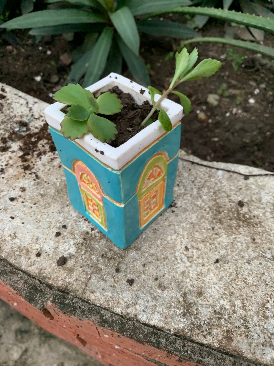 All four didn’t fit in the flowerpot I got today so we had to separate them and put two on another pot. I didn’t have anything to do with the planting of those other two so let’s see if the ones in my flowerpot survive.