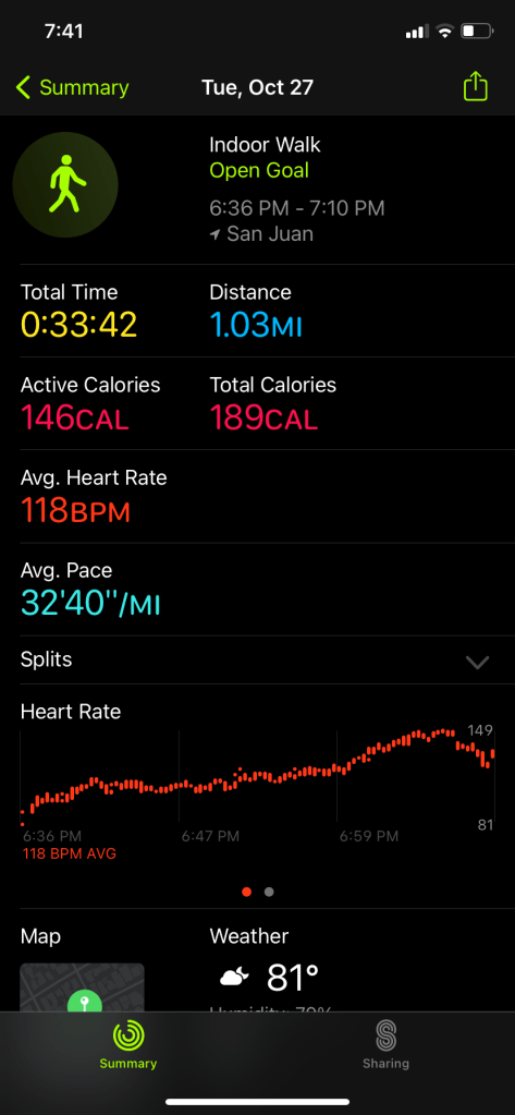 That’s why today, when I came come from work late and tired I decided to just walk. No running, walking fast or on an incline, just walking at a regular pace.
