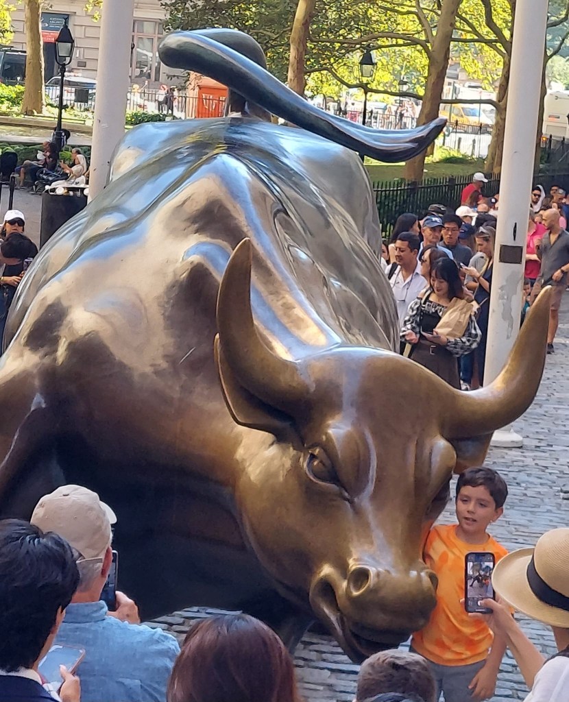 Once we were back in the city we walked to Wall Street to see the Charging Bull, which was also surrounded by people getting a view. What interested me more than the Charging Bull was The Fearless Girl. This statue was originally placed in front of Charging Bull on Wall Street before International Women’s Day in 2017 by artist Kristen Visbal as a challenge to the “boy’s club” in the Corporate world.