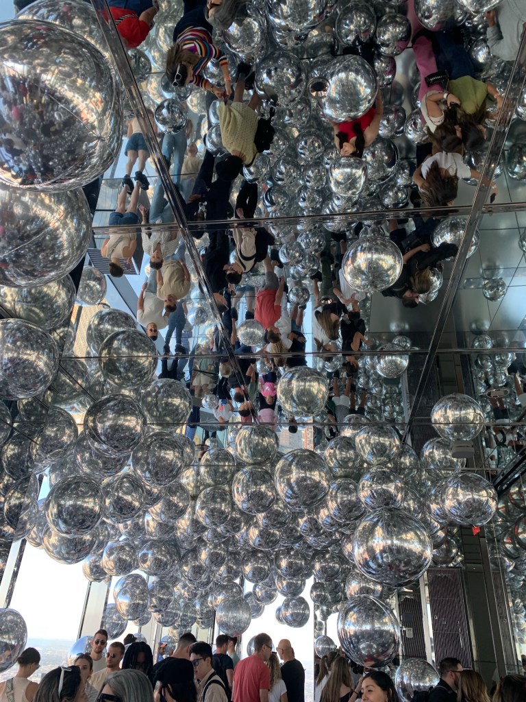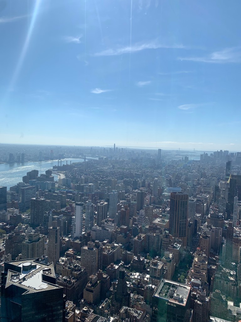 Once the elevator stopped, we were on the 91st floor where we walked into the mirror room. That’s when I understood why we had to wear a black bag over our shoes. As you walk in the room all you see is your reflection and everyone else’s. It was a little confusing. When you look away from the mirrors, you can see the entire city right there, the Hudson River, Statue of Liberty, Empire Statue Building. Everywhere you look through the windows as you walk around, you can recognize another of New York City’s landmarks.