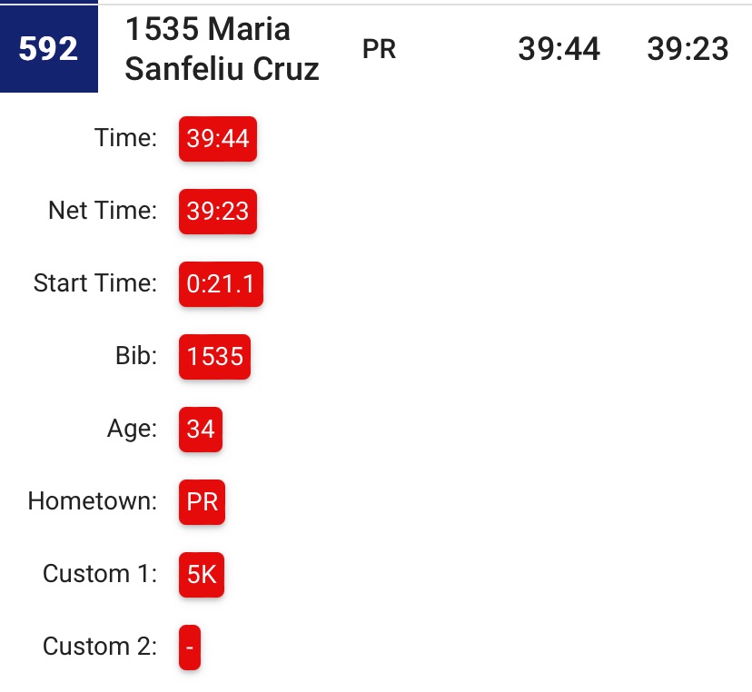 I later saw my timing and it was 39.23 and out of 1,076 runners, I came in 592.