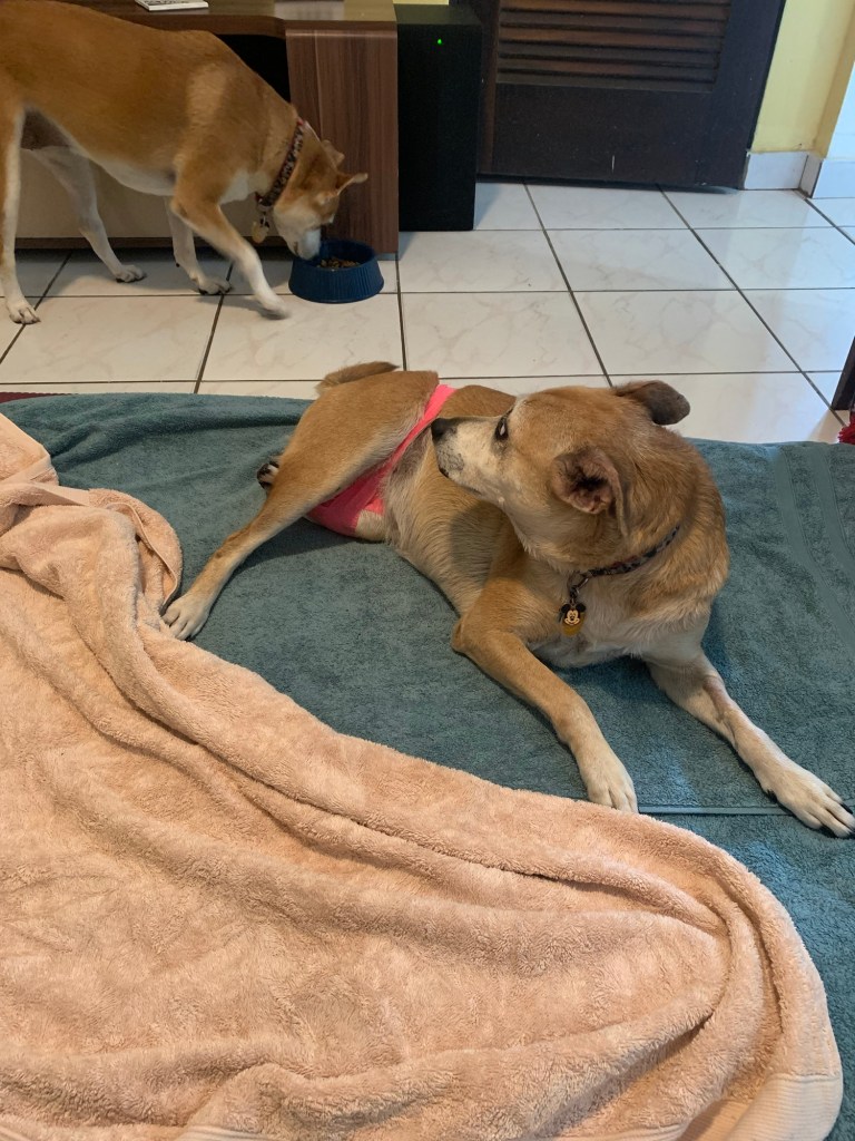 Oh, and Indy is doing a lot better. We won’t know exactly her hip is until Wednesday, but she looks a lot better.