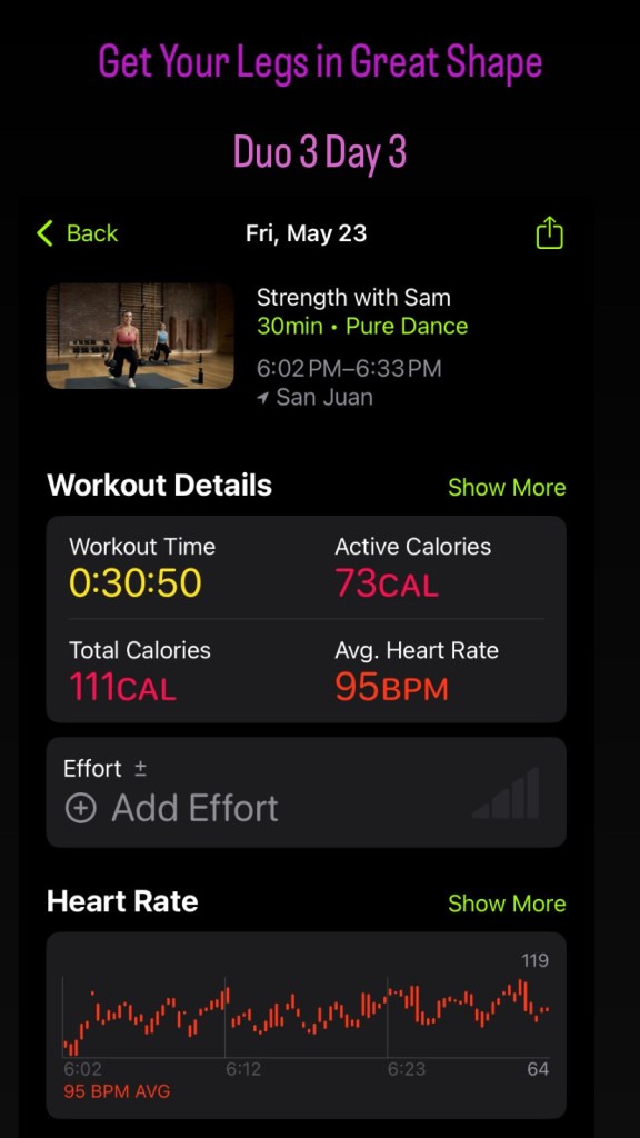 It took me a little longer than anticipated, but I finished the Apple Fitness Collection, Get Your legs in Great Shape Collection on Friday night.