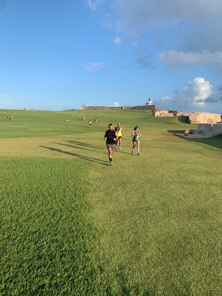 My coaches took it easy on me today and I didn’t have to do the same warm up run the rest of the group did, but I still had to run for two miles in San Juan. After I was done with my warmup, I joined the group running in the grass near El Morro Fortress, to the cones the coach set up.