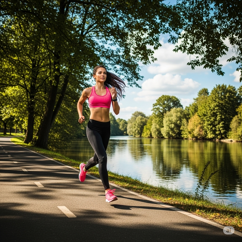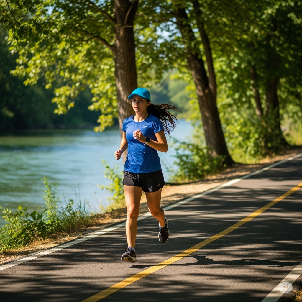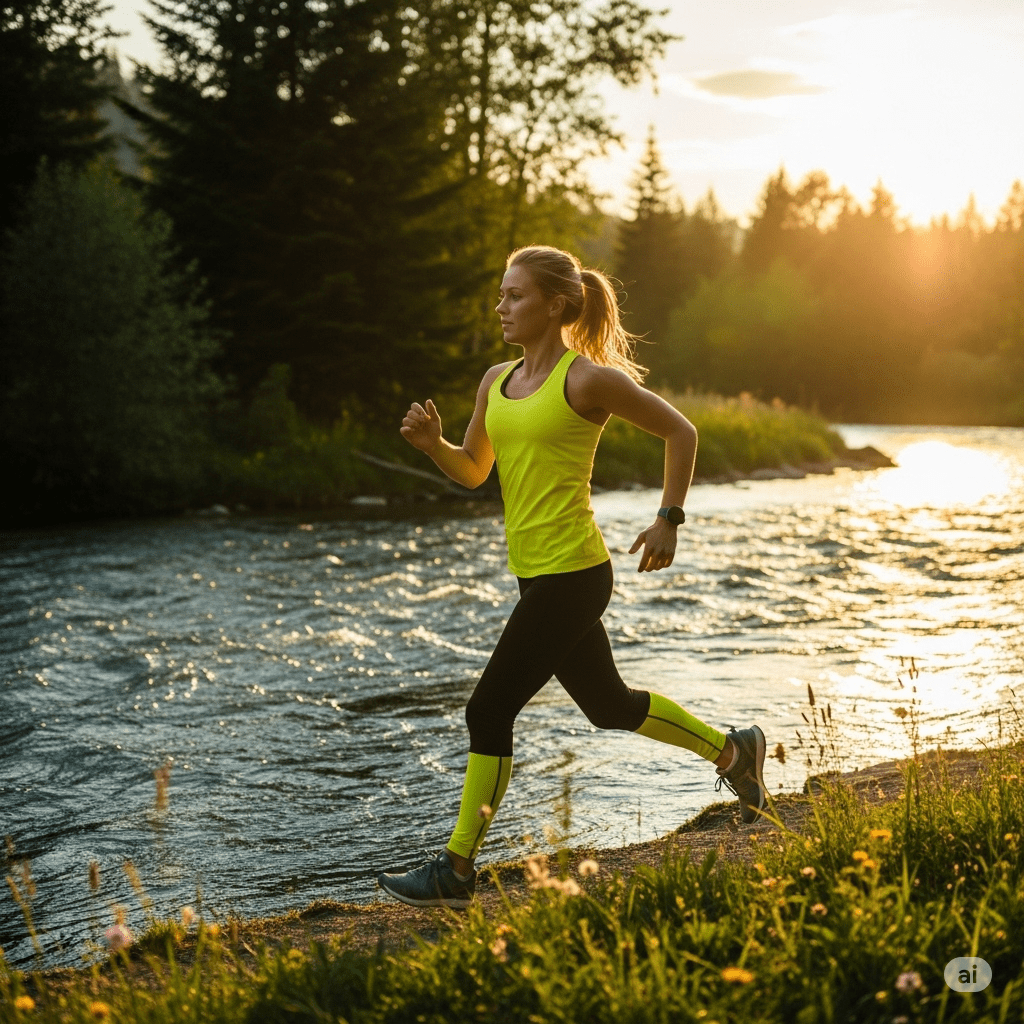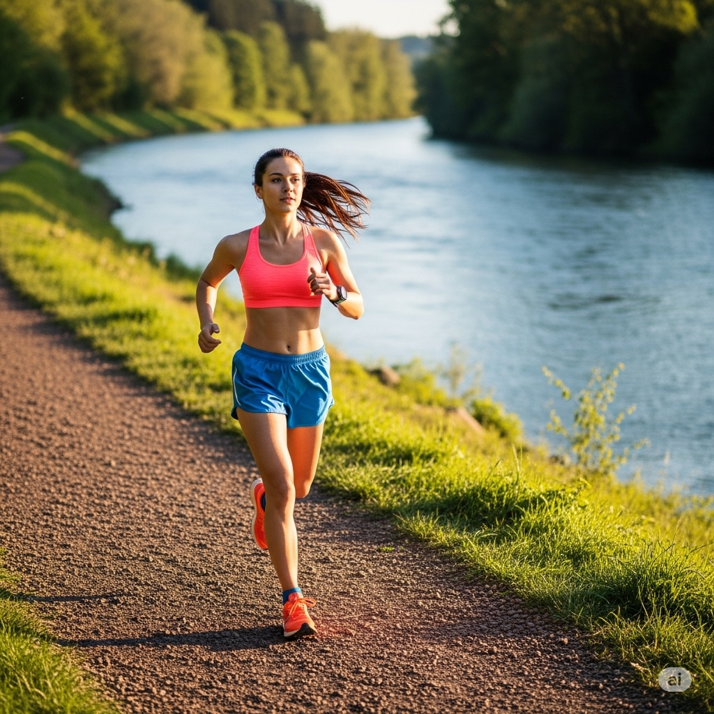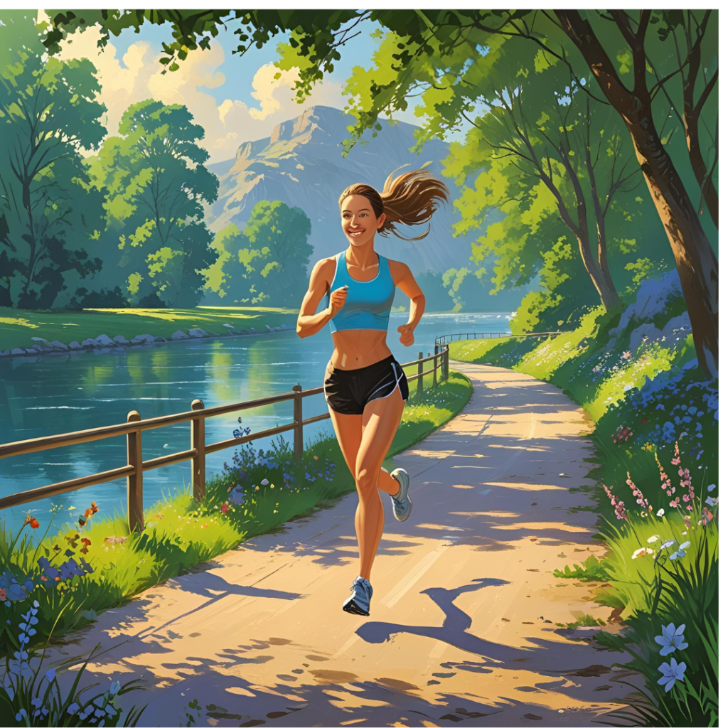 My first attempt was to make an image of me, or just a woman, running by the river, like I did yesterday morning. I had to try a few times to get more or less what I wanted.