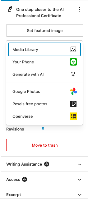 I still need to practice more but it was my first time creating an image with artificial intelligence and I had trouble finding a good app. Google Gemini turned out to be the best one I had tried, until I was going to choose a featured image and got the option to get one with Generative AI. WordPress created one from the descriptions in the draft for my this blog post. I didn’t know I had that option.