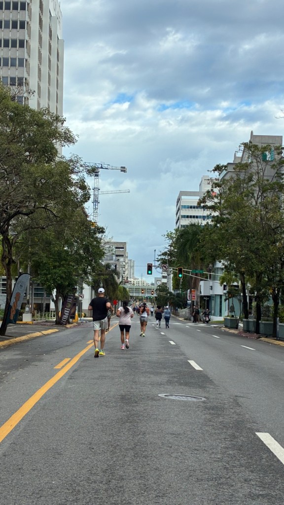 Yesterday, for the first time the town of San Juan was hosting a clear path for runners and walkers in Hato Rey, the financial district. It wasn’t a long path, but free of cars. I had to go around the path five or six times to finish my five miles for today but I liked running a new path. My only suggestion would be to make the path a little longer and maybe add a few trash cans to throw out the water and Gatorade cups after we’re done with them, but apart from that, I hope more people join next month.