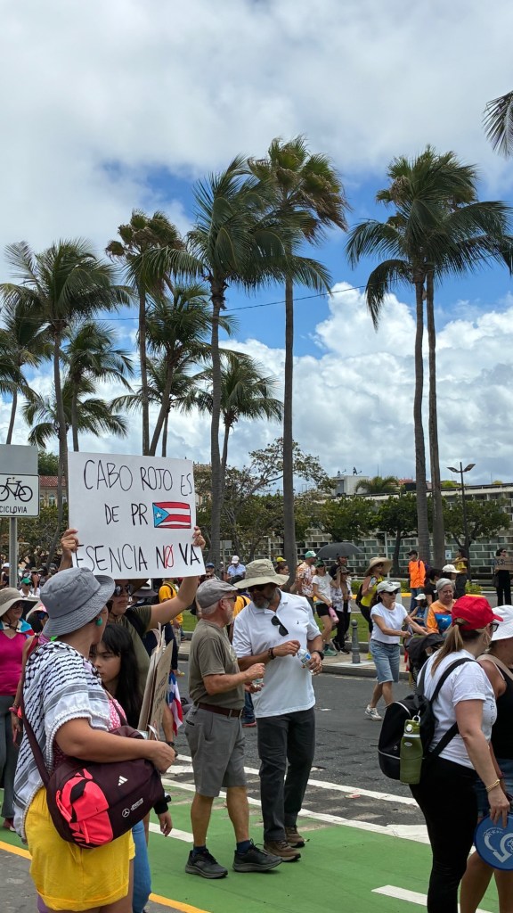 Later I attended a demonstration in Viejo San Juan to put an end to Esencia, an exclusive residential and tourism complex proposed to be built in Cabo Rojo. This huge project will have devastating economic, residential, territorial, historic, and natural effects, among others, on the island. It would displace communities in this beautiful southwest municipality of Puerto Rico, which is not only home to residents of the island, but species, some near extinction, taking over the beautiful beaches and other territories that they call home.